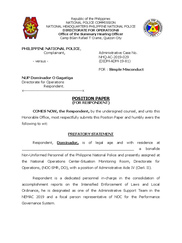 Position Paper Sample Pnp : Pdf Position Paper Real World Internet : The position papers are published in the weekly epidemiological record in english and french and translated into the other who official languages:. Position paper * a position paper is an essay that presents an opinion about an issue, typically that of the author or another specified entity; The pnp personnel immediately arrested the driver and the conveyance loaded with illegal forest products was brought to the denr cenro lagawe, ifugao for scaling, inventory and documentations. Josie gomez sample position paper in a labor case this is a sample position paper in a labor case prepared by our law office. Length may not exceed two pages. Such as a political party.